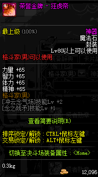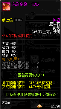 | 辅助装备: | 全职业 鬼剑士 女鬼剑 女格斗 男格斗 神枪手 女枪手 魔法师 男法师 圣职者 暗夜使者 守护者 |