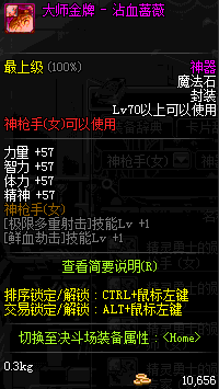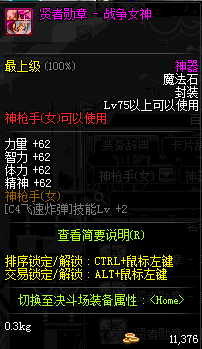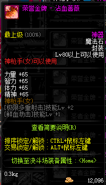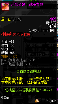 | 辅助装备: | 全职业 鬼剑士 女鬼剑 女格斗 男格斗 神枪手 女枪手 魔法师 男法师 圣职者 暗夜使者 守护者 |