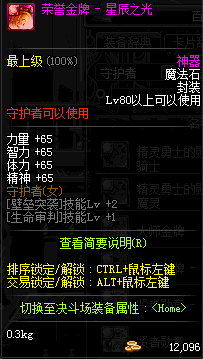 | 辅助装备: | 全职业 鬼剑士 女鬼剑 女格斗 男格斗 神枪手 女枪手 魔法师 男法师 圣职者 暗夜使者 守护者 |