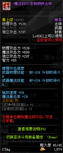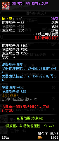 | 15 | (魔法封印)密制桃木念珠 | *Lv13~21普通地下城怪物掉落 *完成[专职贺礼]任务 |