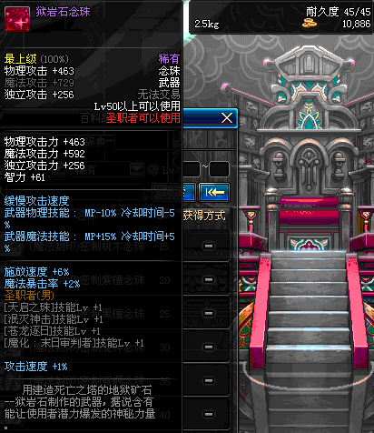 | 45 | 万年冰珠 | *Lv45~51普通地下城怪物掉落 *在加百利的神秘商店购买 |