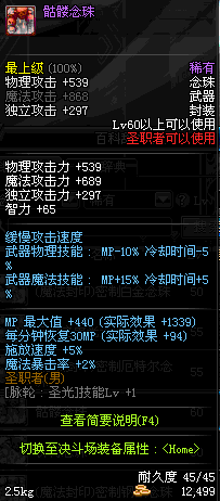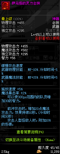 | 45 | 萨乌塔的灵力念珠 | *牛头王萨乌塔 掉落(冰刺庭院) *在NPC敏泰的物品店购买(阿拉德陨石×240) |