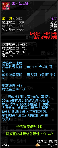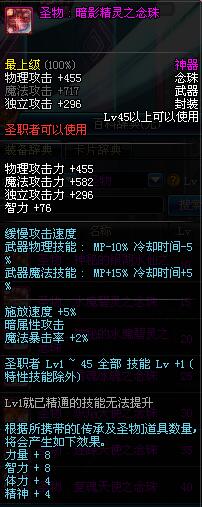 | 45 | 圣物 : 暗影精灵之念珠 | *Lv45~51普通地下城怪物掉落 |