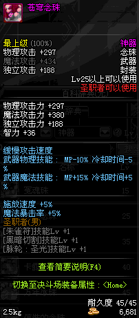 | 25 | 苍穹念珠 | *Lv24~31普通地下城怪物掉落 *在加百利的神秘商店购买 |
