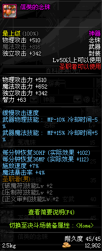 | 50 | 信奘的念珠 | *Lv50~56普通地下城怪物掉落 *在加百利的神秘商店购买 |