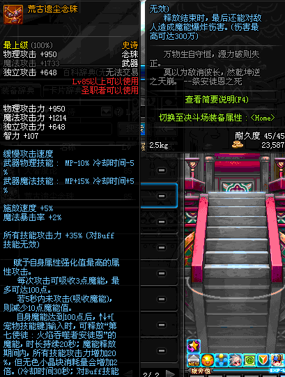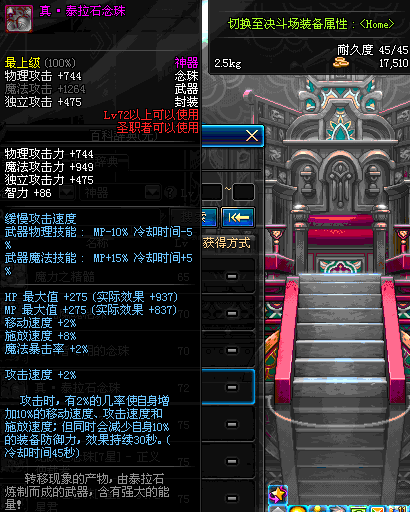 | 72 | 真 · 泰拉石念珠 | *设计图(70LV以上普通地下城 登场的NPC加百利 出售) *泰拉石念珠 → 用远古神器装备进化书升级(NPC船长鲁特 出售) |