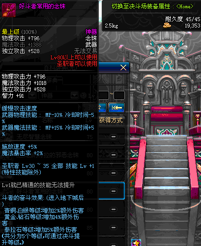 | 80 | 圣物 : 光域魔神的审判念珠 | *Lv80~86普通地下城怪物掉落 | ||