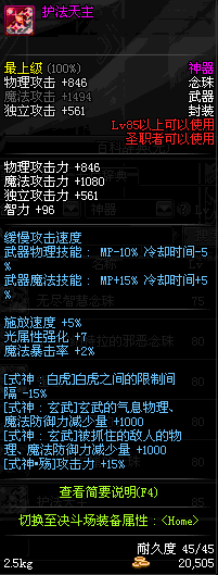 | 辅助装备: | 全职业 鬼剑士 女鬼剑 女格斗 男格斗 神枪手 女枪手 魔法师 男法师 圣职者 暗夜使者 守护者 |
