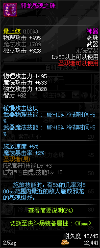 | 50 | 邪龙怨魂之珠 | *邪龙斯皮兹头部 掉落(暮色之城) *在NPC敏泰的物品店购买(阿拉德陨石×285) |