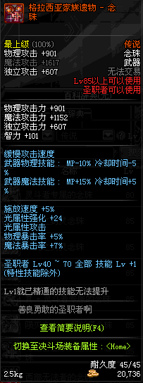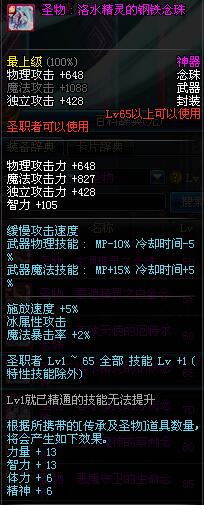 | 65 | 圣物 : 洛水精灵的钢铁念珠 | *Lv65~71普通地下城怪物掉落 |