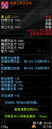 | 85 | 镇魂之封灵念珠 | *时空之门地区 - 吟游诗人艾丽丝 出售 (镇魂之石×100) *购买镇魂武器礼盒(低级镇魂之石×140) |