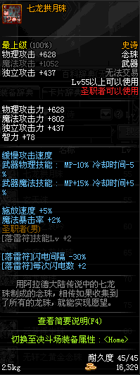 | 55 | 七龙拱月珠 | *Lv54~61深渊地下城怪物掉落 *在NPC沉默之克雷娅的物品店购买 |