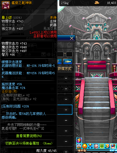 | 65 | 瘟疫之乾坤珠 | *Lv64~71深渊地下城怪物掉落 *在NPC沉默之克雷娅的物品店购买 |