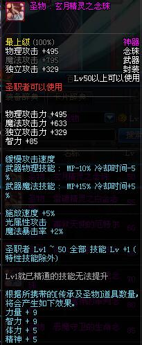 | 50 | 圣物 : 玄月精灵之念珠 | *Lv50~56普通地下城怪物掉落 |