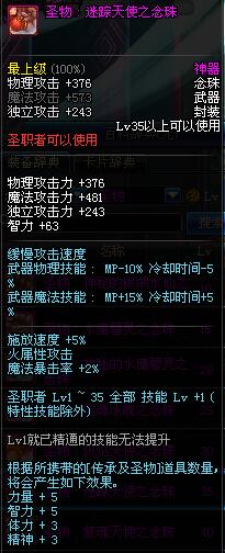 | 35 | 圣物 : 迷踪天使之念珠 | *Lv34~41普通地下城怪物掉落 |