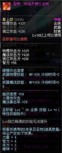 | 30 | 圣物 : 炽焰天使之念珠 | *Lv29~36普通地下城怪物掉落 |