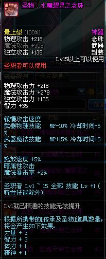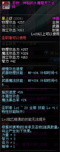 | 15 | 圣物 : 水魔碧灵之念珠 | *Lv13~21普通地下城怪物掉落 |