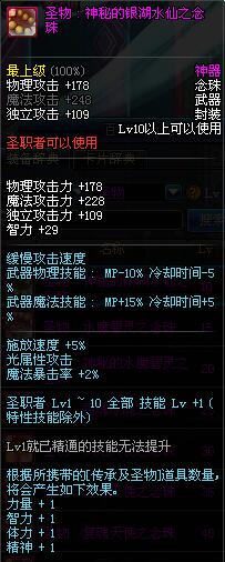 | 10 | 圣物 : 神秘的银湖水仙之念珠 | *Lv8~14普通地下城怪物掉落 |