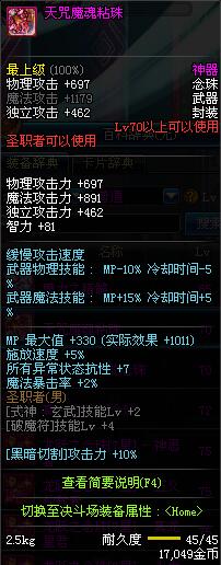 | 70 | 天咒魔魂粘珠 | *Lv70~76普通地下城怪物掉落 *在加百利的神秘商店购买 |