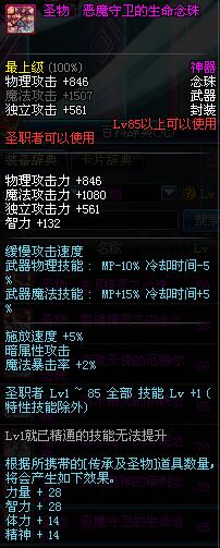 | 85 | 圣物 : 恶魔守卫的生命念珠 | *Lv85~91普通地下城怪物掉落 | ||