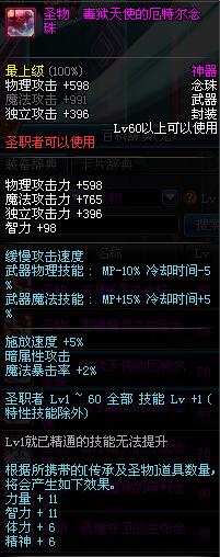 | 60 | 圣物 : 毒狱天使的厄特尔念珠 | *Lv58~66普通地下城怪物掉落 |