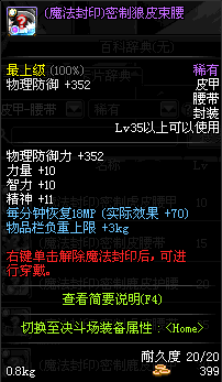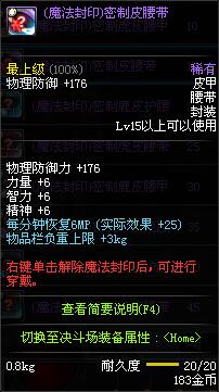 | 15 | (魔法封印)密制皮腰带 | *Lv13~21普通地下城怪物掉落 *完成[[魔法封印防具]天才武道家的试炼(2/3)]任务 *使用Lv13~21怪物掉落的设计图进行制作 |