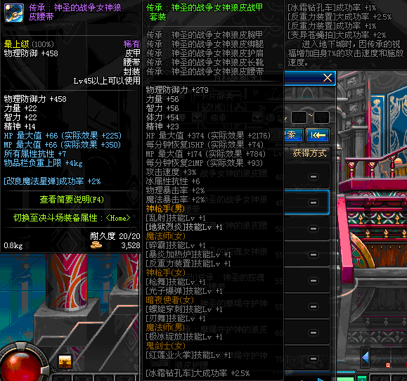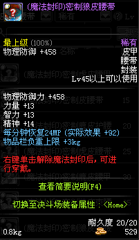 | 45 | 圣物 :战争女神的狼皮腰带 | *Lv45~51普通地下城怪物掉落 |