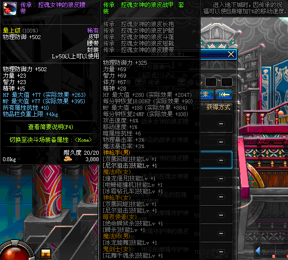| 50 | 圣物 :荣耀的战争女神的狼皮腰带 | *Lv50~56普通地下城怪物掉落 |