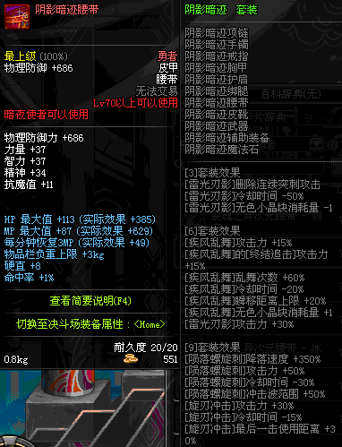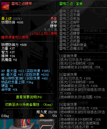 | 辅助装备: | 全职业 鬼剑士 女鬼剑 女格斗 男格斗 神枪手 女枪手 魔法师 男法师 圣职者 暗夜使者 守护者 |