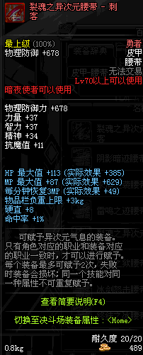 | 70 | 裂魂之异次元腰带 - 刺客 | |||