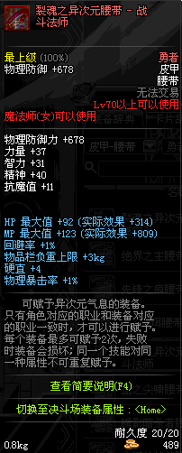 | 70 | 裂魂之异次元腰带 - 战斗法师 | |||