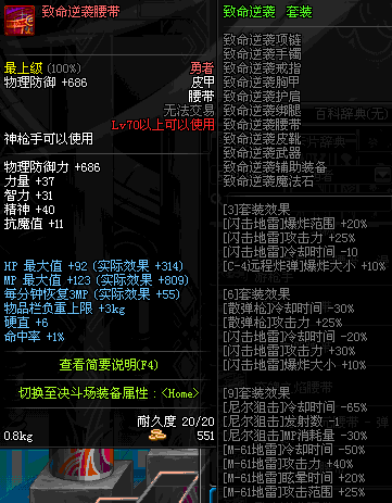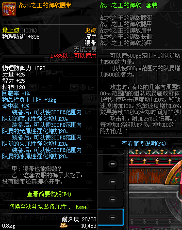 | 85 | 战术之王的御敌腰带 | *Lv84~91深渊地下城怪物掉落 | 战术之王的御敌 套装 | |