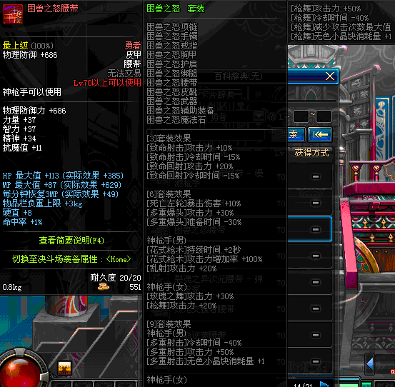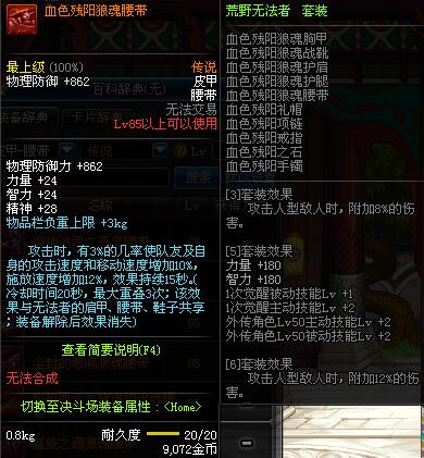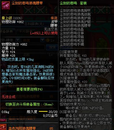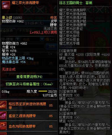 | 85 | 血色残阳狼魂腰带 | *昨日之巴斯顿 掉落 (在远古地下城里出没。) *从NPC鲁特的物品店出售的[血色残阳防具礼盒]中获得 |