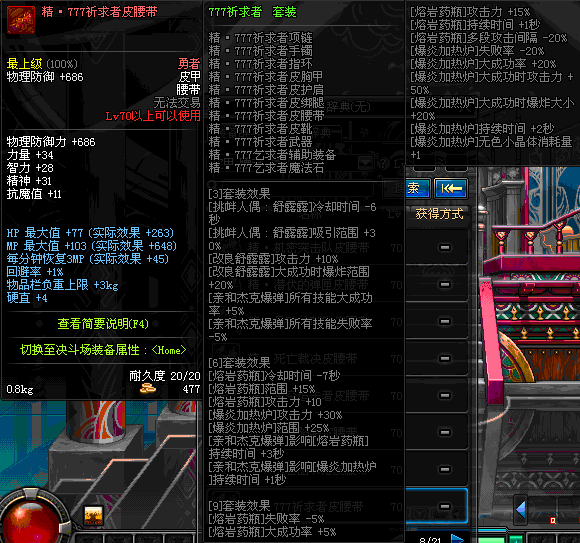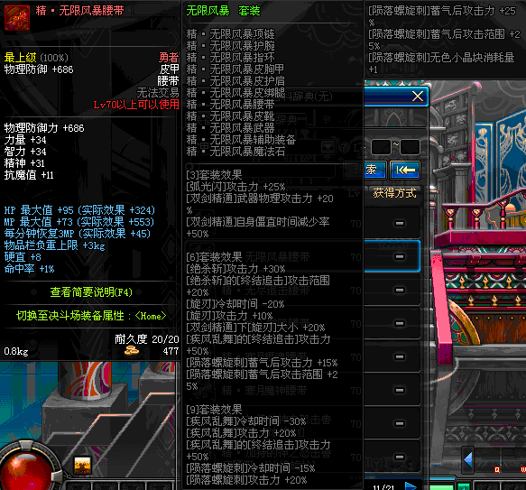 | 76 | 真 · 极限之袭腰带 | *设计图(70LV以上普通地下城 登场的NPC加百利 出售) *极限之袭腰带 → 用远古神器装备进化书升级(NPC船长鲁特 出售) |