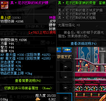 | 76 | 真 · 尼尔巴斯的绒皮护腰 | *设计图(70LV以上普通地下城 登场的NPC加百利 出售) *尼尔巴斯的绒皮护腰 → 用远古神器装备进化书升级(NPC船长鲁特 出售) |