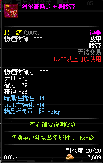 | 85 | 圣物 :荣耀的天马守护神的狼皮腰带 | *Lv85~91普通地下城怪物掉落 | ||