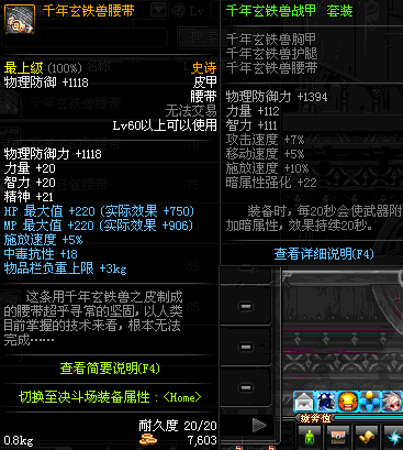 | 60 | 千年玄铁兽腰带 | *在NPC歌兰蒂斯·格拉西亚的物品店购买 | 千年玄铁兽战甲 套装 | |