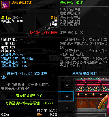 | 75 | 怒海狂鲨腰带 | *Lv74~81深渊地下城怪物掉落 | 怒海狂鲨 套装 | |