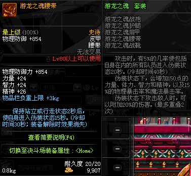 | 80 | 游龙之魂腰带 | *Lv79~86深渊地下城怪物掉落 | 游龙之魂 套装 | |