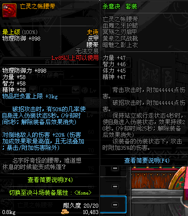 | 85 | 亡灵之帐腰带 | *Lv84~91深渊地下城怪物掉落 | 杀意决 套装 | |