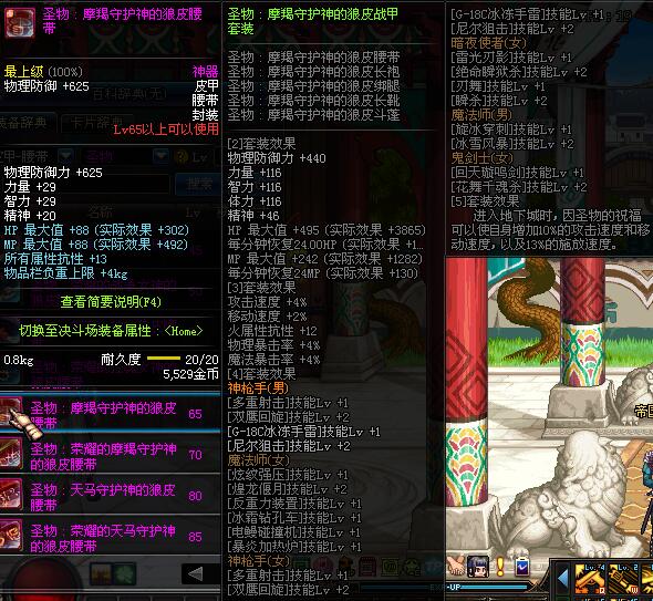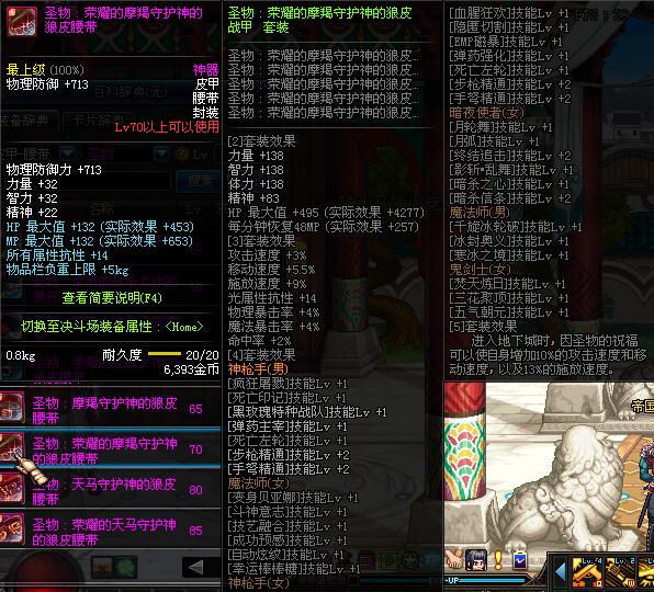 | 65 | 圣物 :摩羯守护神的狼皮腰带 | *Lv65~71普通地下城怪物掉落 |