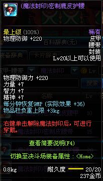 | 20 | (魔法封印)密制鹿皮护腰 | *Lv19~26普通地下城怪物掉落 *完成[摧毁蚁穴]任务 *使用Lv19~26怪物掉落的设计图进行制作 |