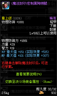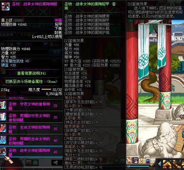 | 45 | 圣物 :战争女神的黑陶黑陶绑腿 | *Lv45~51普通地下城怪物掉落 |