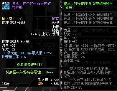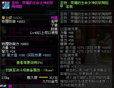 | 40 | 圣物 :荣耀的生命女神的软陶绑腿 | *Lv39~46普通地下城怪物掉落 |