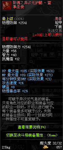 | 70 | 裂魂之异次元护腿 - 剑魂 | |||