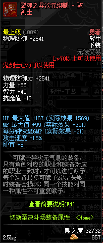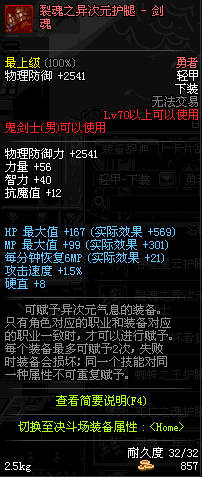 | 70 | 裂魂之异次元绑腿 - 驭剑士 | |||