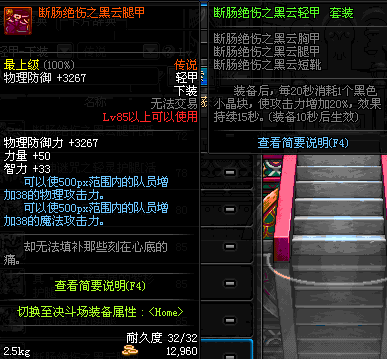 | 85 | 断肠绝伤之黑云腿甲 | *昨日之巴斯顿 掉落 (在远古地下城里出没。) *从NPC鲁特的物品店出售的[断肠绝伤防具礼盒]中获得 *任务奖励(地下城:比尔马克帝国试验场 NPC娜塔莉娅·休勒) |