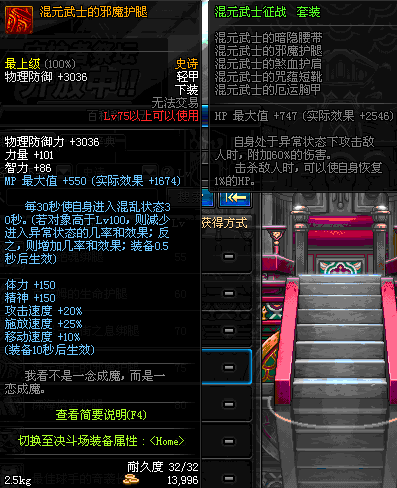 | 75 | 混元武士的邪魔护腿 | *Lv74~81深渊地下城怪物掉落 | 混元武士征战 套装 | |