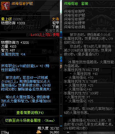| 80 | 深海熔岩护腿 | *Lv79~86深渊地下城怪物掉落 | 深海熔岩 套装 | |