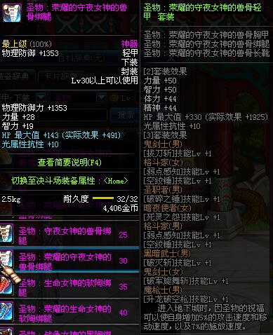 | 30 | 圣物 :荣耀的守夜女神的兽骨绑腿 | *Lv29~36普通地下城怪物掉落 |